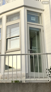 ふかし枠が付いて、そこにFIX窓と開き窓を3つ組み合わせた段窓になり、普段なかなか見ない形でした。