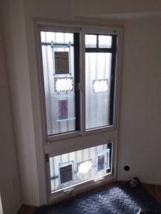 取り付け後の写真になります!元の写真と比べてもらうと同じ窓の仕様で2重窓が付いていると思いませんか?元々上下で別の窓に分かれているのですが、横に1本柱があります。これで上下の窓を分けて上は引違い窓、下はFIX窓になっています。こうやって元の窓の仕様と同じような形状の2重窓になりました!