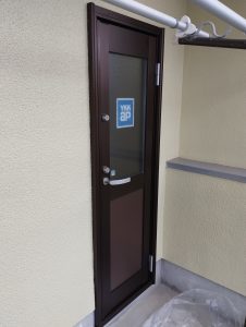 取り替え後の写真になります。元々の勝手口ドアには網入りのガラスが入っていましたが今回はペアガラスが入って断熱性能がアップ!意外と勝手口から寒気が入ってきたりして寒い思いをすることがあるかと思いますが、ガラスが2重になることで、断熱の性能が上がるので、お勧めです!