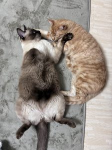 こんな感じで、我が家のにゃんこたちがぬくぬくしております🐱