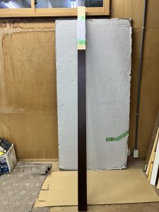 この木材は、掃き出し窓のプラマードの下に補強として入れる木材で、見た目に違和感がないようにシートを巻いています。