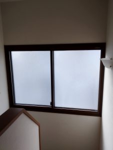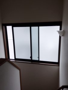 こんにちは湊です。今回の工事は2重窓の取り付け工事になります。元の窓が、階段の窓になります。