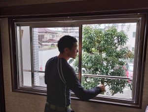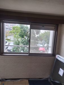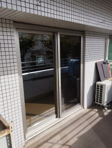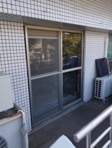 こんにちは湊です。今回もマンション用マドリモ工事行ってきました。元のサッシの写真になります。やはり元のサッシには単板ガラス(1枚ガラス)が入っています。