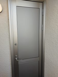 今回のご依頼は、勝手口の交換です。新しい勝手口は、欄間なしの断熱パネルになりました。 お客様有難う御座いました。