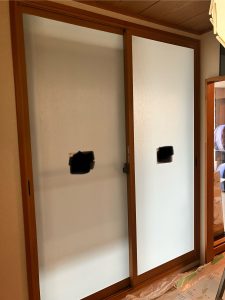 今日は和室に和紙のようなガラスのインプラスを取り付けました。